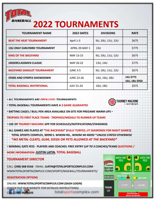 These tips are easy to implement and will help anyone. Total Baseball will help you select the best tournaments to compete in while maintaining the option to travel if you choose. The Backyard fully turfed lit diamonds at 30990 S.
